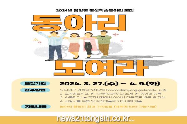 전통정원·인문학교육 특구이자 평생학습도시 담양군이 평생교육을 이끌어갈 평생학습동아리를 모집한다.