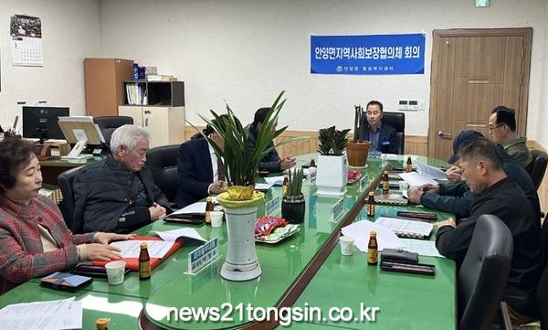 안양면행정복지센터에서 열린 이날 회의에서는 2023년 사업추진결과, 2024년 특화사업 추진계획 및 신규 자원발굴에 대하여 논의하고 지역 취약계층에 대한 지원책을 모색했다.