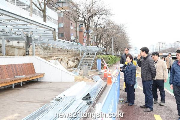 김미경 은평구청장은 28일 2024 불광천 벚꽃축제 '은평의 봄' 안전점검을 실시했다. 전반적인 축제 준비 상황을 보고받고 행사장 질서유지와 교통 대책 마련, 시설물 안전성 확인 안전사고 예방을 위한 사전 점검을 진행했다.