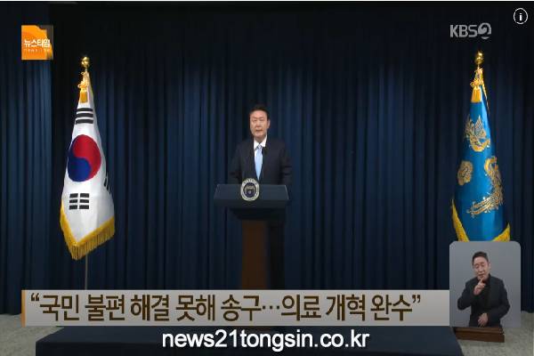 윤석열 대통령은 국민 불편을 빨리 해결하지 못해 송구하다고 말했다. 그러면서 국민을 위해 의료개혁을 완수하겠다는 의지를 재확인했다.