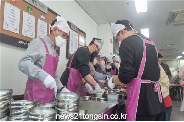 이날 정일섭 본부장을 비롯한 직원 14명은 강릉시 북부노인종합복지관을 방문하여 어르신 300분의 배식 활동 지원 및 배식 전후 경로식당 환경정리를 함께하며 부족한 일손을 도왔다.
