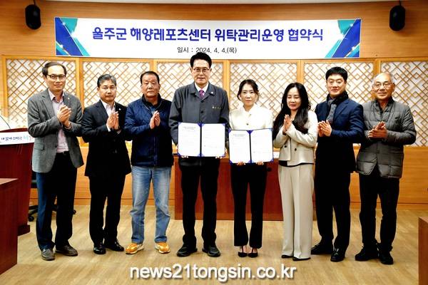(뉴스21통신/우정석기자) = 울산시 울주군이 4일 군청 은행나무홀에서 이순걸 울주군수와 강수진 ㈜풀스피드 대표가 참석한 가운데 ‘울주군 해양레포츠센터 위탁 관리·운영 협약식’을 가졌다.