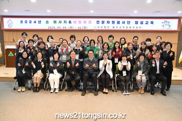 (뉴스21통신/우정석기자) = (사)울주군자원봉사센터(이사장 손덕현)가 4일 군청 문수홀에서 자원봉사자 30여명을 대상으로 손마사지&네일아트 전문봉사단 양성교육을 진행했다.