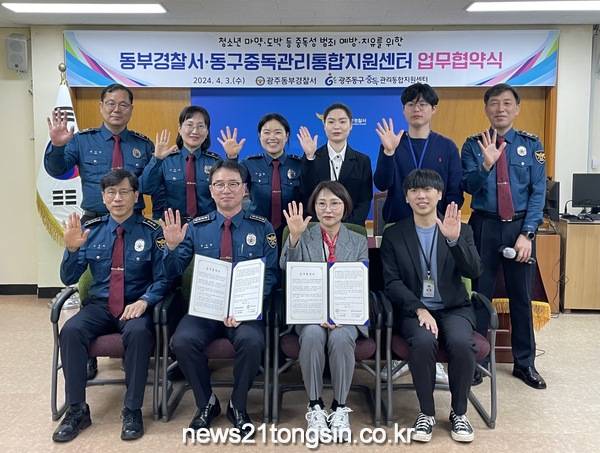 광주 동구(청장 임택) 중독관리통합지원센터는 최근 광주동부경찰서 여성청소년과와 청소년 마약·도박 등 중독성 범죄 예방·치유를 위한 업무협약을 체결했다고 밝혔다.