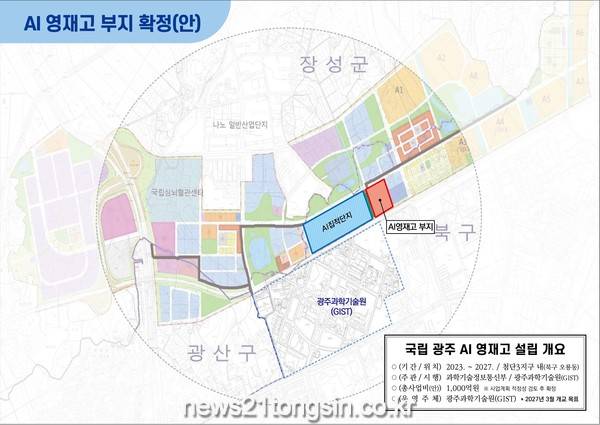 광주 인공지능(AI)영재고등학교 설립은 대통령 지역공약으로 추진됐으며, 지난 1월 ‘광주과학기술원(GIST)법’ 일부 개정법률안이 공포돼 지스트(GIST) 부설 AI영재고의 설립 근거가 마련됐다. 광주시는 올해 AI영재고 실시설계비로 국비 31억7500만원을 확보했다.