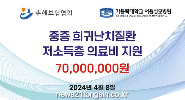손해보험협회(회장 이병래)와 가톨릭대학교 서울성모병원(병원장 윤승규)은 중증질환 등으로 어려움을 겪고 있는 저소득층의 의료비를 지원하기 위하여 8일(월)에 업무 협약을 체결했다.