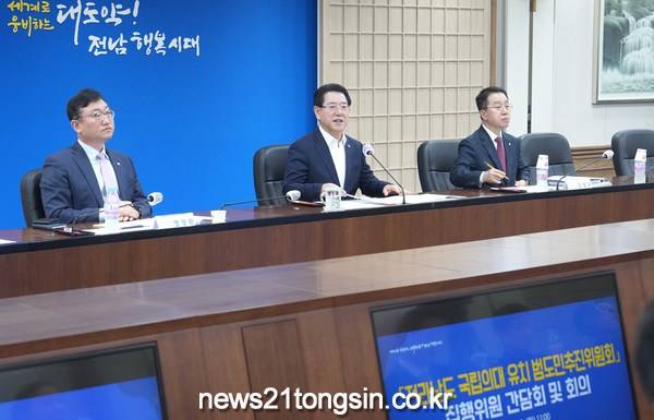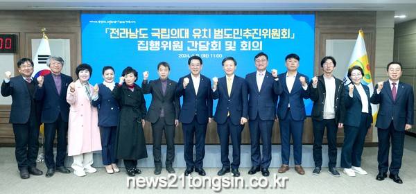[뉴스21통신 박찬웅 기자] 전라남도는 9일 도청 서재필실에서 ‘전라남도 국립의대 유치 범도민추진위원회’ 집행위원과 의과대학 설립 관련 간담회를 진행, 공모 방식 추진 배경을 설명해 공감을 이끌어냈다.