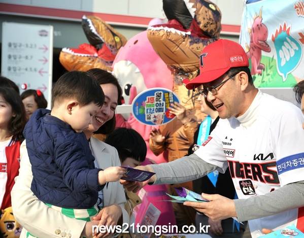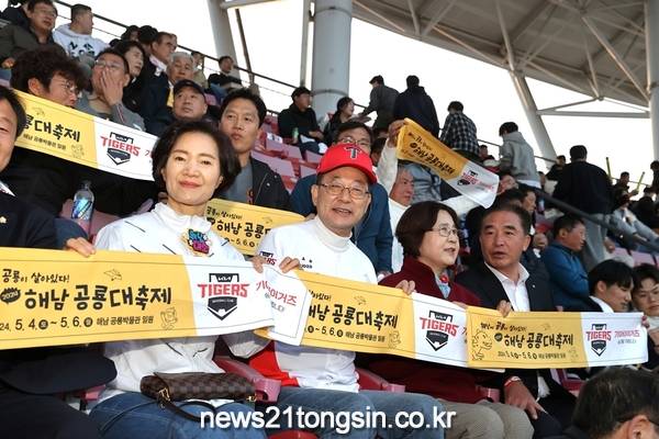 [뉴스21통신 박찬웅 기자] 지난 5일 광주챔피언스필드 야구장에서 진행된 기아타이거즈와 삼성라이온스 경기가‘해남군의 날’네이밍데이로 열렸다.
