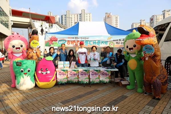 경기장 앞에는 오는 5월 4일부터 3일간 진행되는 제2회 해남공룡대축제를 비롯해 해남미소, 고향사랑기부제 등 홍보부스가 마련됐다. 명현관 군수를 비롯해 군 공직자로 구성된 홍보단 30여명은 공룡모양 옷을 입고, 해남공룡대축제 등 관광지와 함께 해남 농수특산물, 고향사랑기부 기부 등에 대한 열띤 홍보를 펼쳐 눈길을 사로잡았다.