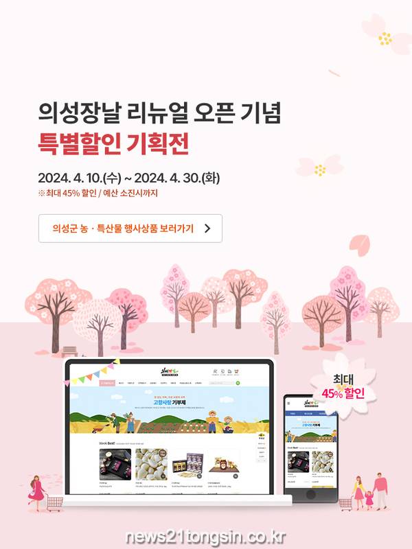 의성군(군수 김주수) 대표 농특산물 쇼핑몰인‘의성장날’이 홈페이지 개편 기념으로 4월 10일부터 고객감사 특별 이벤트를 실시한다.