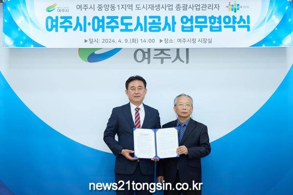 여주시(시장 이충우)는 지난 4월 9일 여주도시공사와 여주시청 시장실에서 여주시 중앙동1지역 도시재생사업에 대한 MOU 체결식을 가졌다.