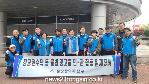(뉴스21통신/최원영기자=울산 남구(구청장 서동욱)는 제22대 국회의원선거 이후 오는 24일까지 민‧관 합동 정비반 6개 반 20명을 구성해 주요 간선도로변 및 편의시설 중심으로 불법광고물 일제정비를 실시한다고 11일 밝혔다.