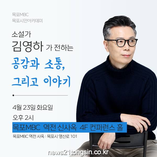 이번 강좌는 목포MBC 역전 신사옥 컨퍼런스홀에서 진행되며, 소설가 김영하를 초청해 “공감과 소통, 그리고 이야기”라는 주제로 열릴 예정이다.