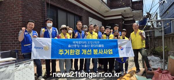 (뉴스21통신/최원영기자)=(사)울주군자원봉사센터(이사장 손덕현)주관 뉴울산로터리클럽(회장 김영철) 울산중앙로타리클럽(회장 전형채) 회원 20여 명은 4월 14일 온산읍에 거주하는 기초수급⋅홀몸어르신 세대에 도배 및 단열, 장판, 씽크대 및 전등교체 봉사활동을 펼쳤다.