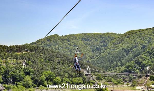 지난해 5월 개장한 구절초 짚와이어는 2라인(L=550m, 경사율 9.9%)으로, 아이부터 어른까지 남녀노소 함께 즐길 수 있다. 지난해에는 1만 1000여명이 하늘에서 정원의 경치를 만끽했다.