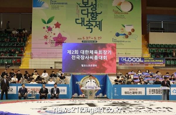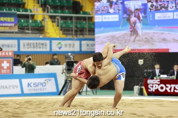 [뉴스21통신 박찬웅 기자] 15일 보성군 벌교스포츠센터에서 ‘제2회 대한체육회장기 전국장사씨름대회’가 열렸다.