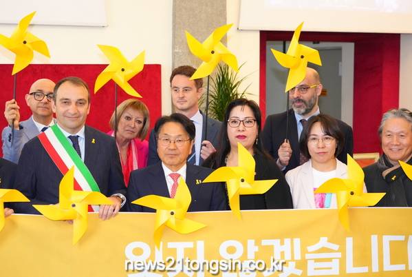 강 시장과 로 루쏘 시장은 이날 ‘광주시-토리노시 우호협약 체결’을 위해 만났다. 앞서 강 시장은 “세월호 참사 10주기를 맞아 각자의 위치에서 안전생명사회를 만드는데 혼신을 다하자”는 바람을 로 루쏘 시장에게 전했고, 로 루쏘 시장이 “함께 하겠다”는 뜻을 밝히면서 추모의 자리가 마련됐다.