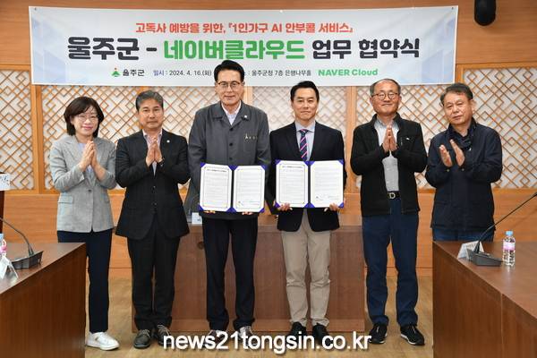 (뉴스21통신/우정석기자) = 울산시 울주군이 16일 네이버㈜와 고독사 예방을 위한 ‘1인 가구 AI 안부콜 서비스’ 운영 협약을 체결해 이달부터 시범사업을 추진한다고 밝혔다.