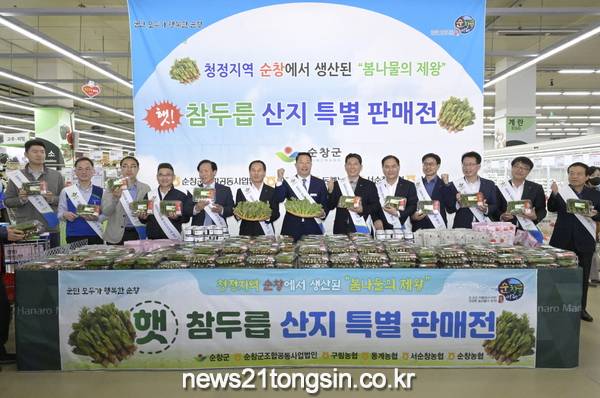순창군이 서울 양재 하나로 유통센터에서 순창군 주최하고 순창군 조합공동사업법인 주관으로 두릅 판촉행사를 16일 가졌다.