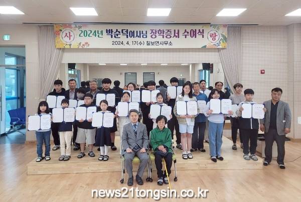 정읍시 칠보면은 지난 17일 오후 5시 행복이음센터 대강당에서 학생과 학부모 50여명이 참석한 가운데 박순덕 여사 장학 증서 수여식을 개최했다.
