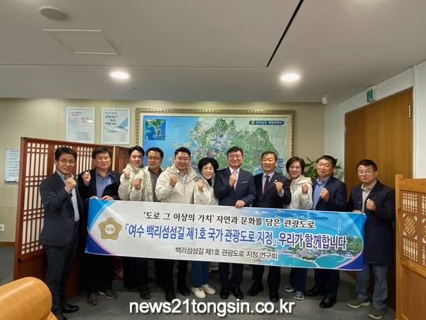 이날 연구회는 이광일 도의원과 함께 명창환 전남도 부지사 등 도청 관계공무원을 만나 ‘국토 균형발전 및 지역 경제 활성화를 위한 여수 백리섬섬길 제1호 국가 관광도로 지정 건의문’을 전달했다.