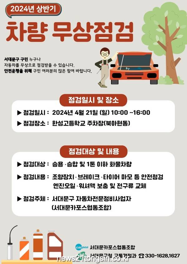 이번 무상점검에 관한 자세한 내용은 서대문구청 교통행정과(02-330-1628)로 문의하면 된다.