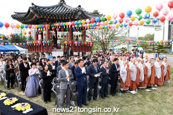 김진열 군수는 축사를 통해 “부처님 오신 날 봉축을 맞아 우리 군이 다시 한번 화합되고 사랑이 넘치는 지역으로 자리매김되길 바라며, 새로운 역사를 이루는 중요한 시점에 있는 군위군과 군민들이 부처님의 평화와 사랑으로 가득하기를 기원한다”라고 말했다.