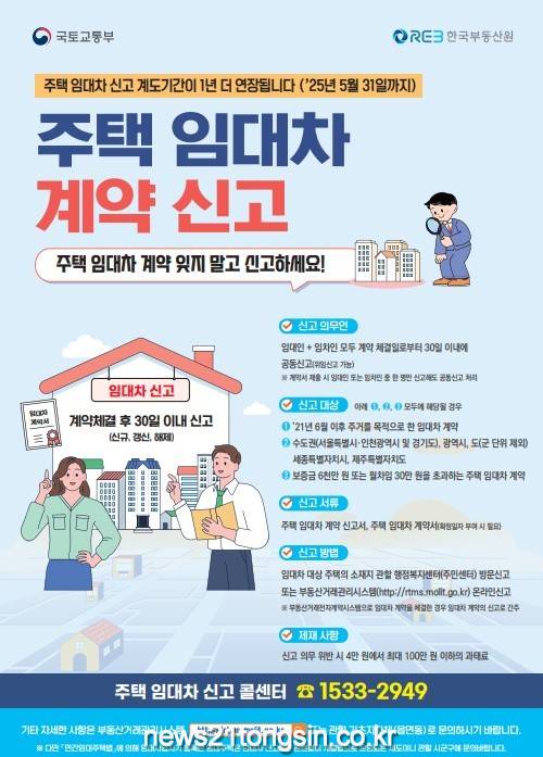 광주광역시(시장 강기정)는 국토교통부 결정으로 ‘주택 임대차 신고제’ 계도기간을 2024년 5월 31일에서 2025년 5월 31일까지 1년 추가 연장한다.