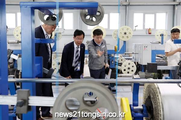 박병규 청장을 비롯한 광산구 경제사절단의 기업인들은 박인철 무송지오씨(주) 대표이사와 함께 공장 시설을 둘러보면서 기업 운영 상황, 현지 진출 과정 등에 대한 설명을 들었다.