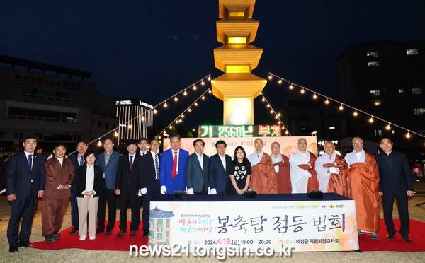 의성군은 지난 19일 오후 7시 의성읍 북원회전교차로에서 불기2568년 부처님오신날(5월15일)을 맞아 봉축탑 점등법회를 열었다.