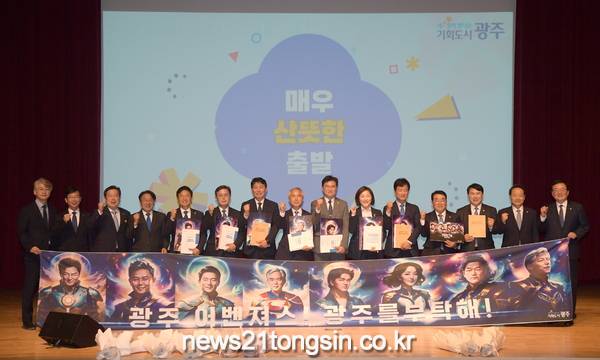 광주광역시(시장 강기정)는 광주시의회(의장 정무창), 광주시교육청(교육감 이정선)과 공동으로 25일 시청 대회의실에서 제22대 광주지역 국회의원 당선인 초청 행사를 열고, 지역발전을 위한 협력을 다짐했다.