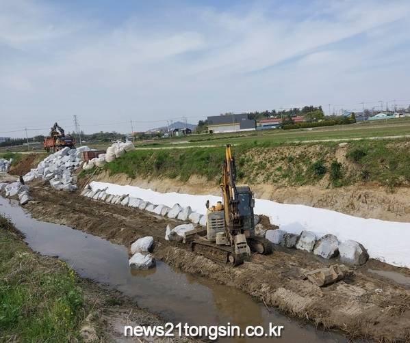 특히, 산북천 제방 파이핑 구간은 유실된 제방 절토 및 등탁배수통문 철거 후 연약지반처리, 차수벽 설치 공사를 진행해 현재 배수통문 재설치를 완료했다.