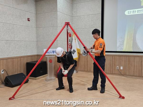 광주광역시(시장 강기정)는 26일 시청 무등홀에서 ‘밀폐공간 질식사고 대응을 위한 긴급구조훈련’을 실시했다.