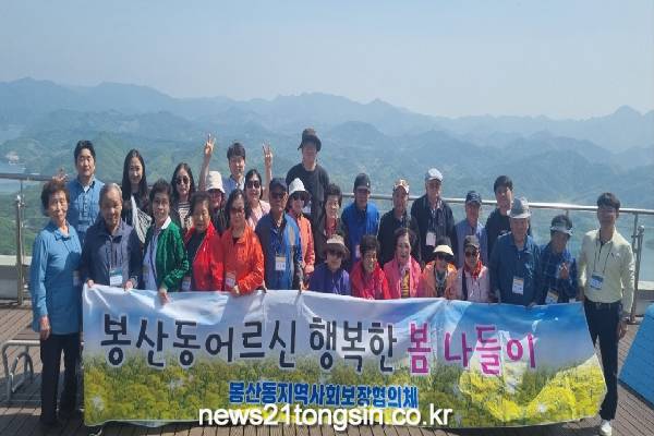 '봉산동어르신 행복한 봄 나들이' 행사는 평소 여행 다니기 어려운 어르신들을 모시고 야외 문화생활을 지원하고자 기획되었으며, 충북 제천시 청풍 일원에서 유람선 및 케이블카 탑승 다양한 관광코스를 여행했다.