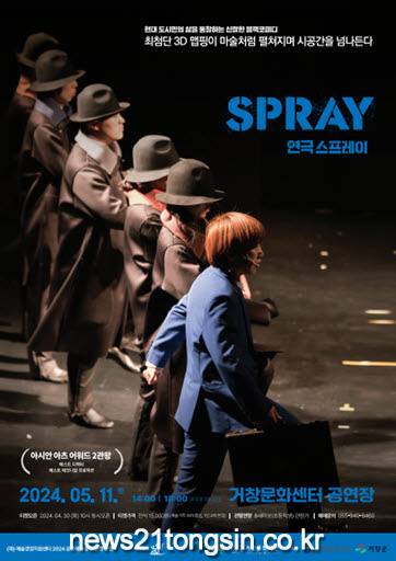 (재)거창문화재단(이사장 구인모 거창군수)은 5월 11일 토요일 오후 2시와 오후 6시에 거창문화센터 공연장에서 넌버벌 퍼포먼스 ‘스프레이’ 공연을 개최한다고 29일 밝혔다.