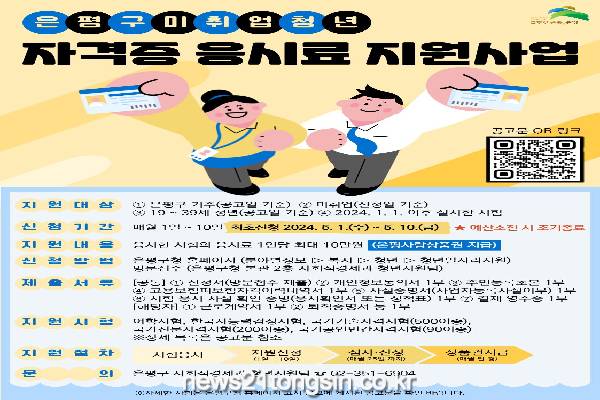 은평구는 내달 1일부터 미취업 청년들의 취업 준비 비용 부담을 덜어주고 취업 경쟁력을 높이기 위해 '자격증 응시료 지원사업'을 시작한다고 밝혔다.