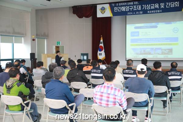 [뉴스21통신 박민창기자] 목포해양경찰서는 지난 29일 서경 5층 강당에서 관내 민간해양구조대를 대상으로 기상교육 및 간담회를 가졌다.