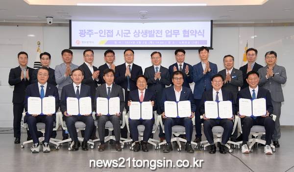 광주광역시(시장 강기정)는 2일 광주시청 소회의실에서 ‘빛고을 광역경제권 조성을 위한 상생발전 업무협약식’을 개최했다. 이날 협약식에는 강기정 광주시장, 이병노 담양군수, 구복규 화순군수, 이상익 함평군수, 강종만 영광군수, 김한종 장성군수, 안상현 나주부시장 등이 참석했다.