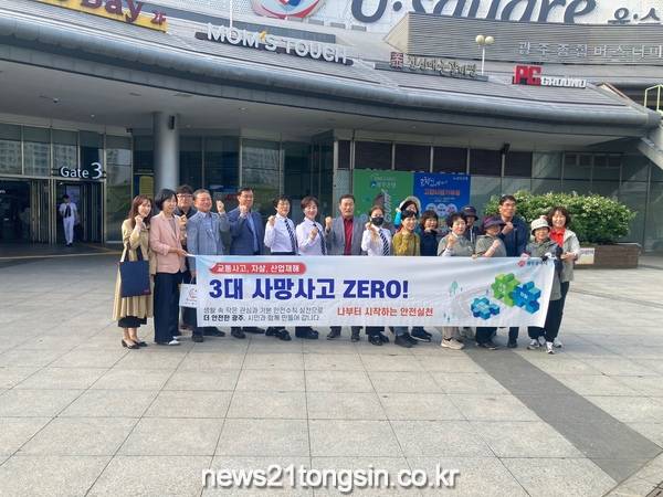 광주시는 2일 종합터미널 유스퀘어 앞에서 ‘교통사고, 자살, 산업재해 3대 사망사고 제로’를 주제로 안전문화 실천 캠페인을 벌였다.