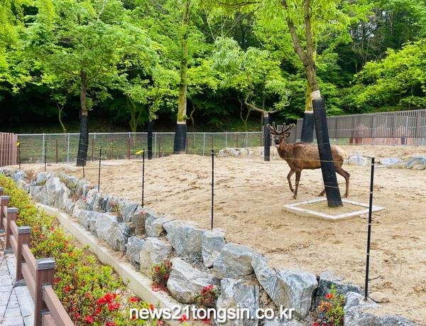 광주 우치동물원이 철조망으로 둘러싸여진 낙후된 사슴사를 친환경적으로 새단장해 어린이날을 앞둔 3일 재개장했다.