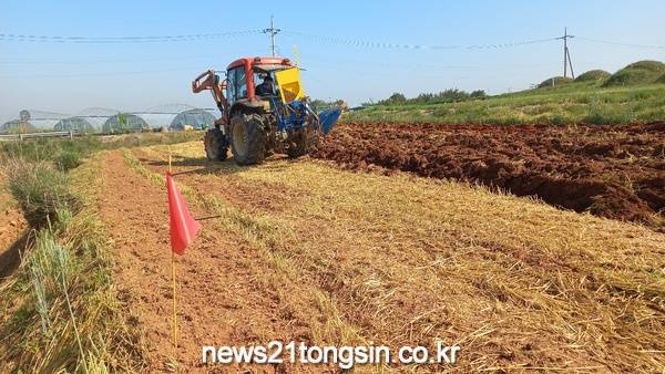 이번 실증시험은 ‘질소비료 사용량 절감 및 수량 증대를 위한 심층시비기술 현장실증’으로 영원면 장재리에 위치한 농가 포장(圃場)에서 지난 1일 사료용 옥수수 파종으로 현장 실증시험을 시작했다.