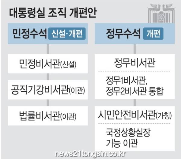 윤 대통령은 이날 용산 대통령실에서 이같은 조직 개편 및 인선 내용을 직접 발표했다.