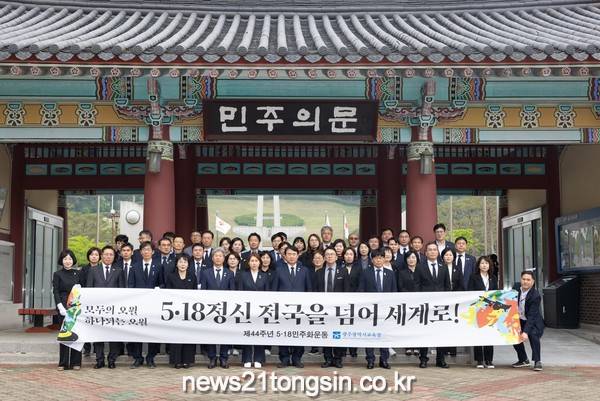 이정선 교육감이 7일 오전 9시 ‘5·18민주화운동 44주년’을 맞아 시교육청 및 산하기관 간부 등 50여 명과 함께 국립5·18민주묘지를 방문해 공식 참배했다.