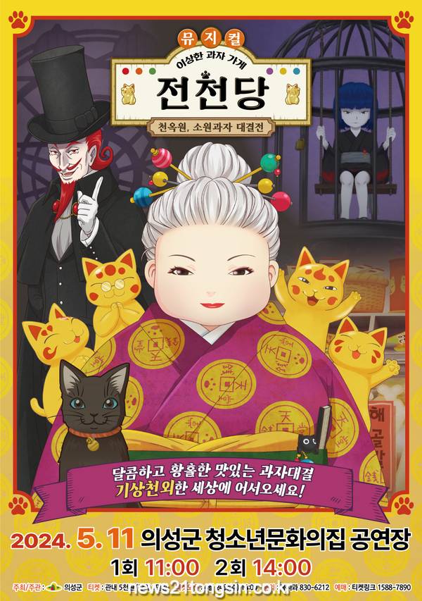 의성군은 5월 가정의 달을 맞아 어린이뮤지컬 ‘이상한 과자가게 전천당’을 오는 11일 2회에 걸쳐 의성군 청소년문화의집 공연장에서 개최한다고 밝혔다.