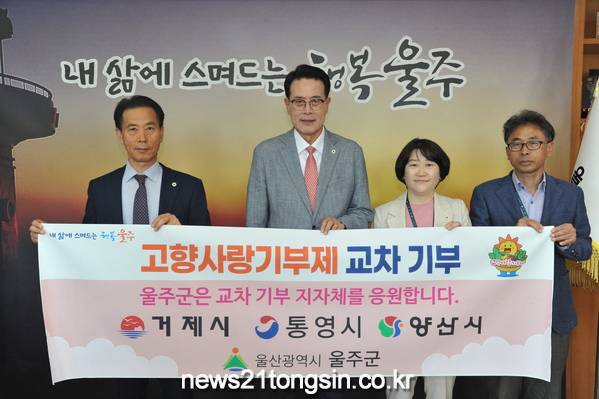 (뉴스21통신/우정석기자) = 울산시 울주군이 13일 고향사랑기부제 기부문화 활성화와 지역간 상생 발전을 위해 거제·통영·양산시 공무원과 고향사랑 상호 교차 기부를 실시했다.