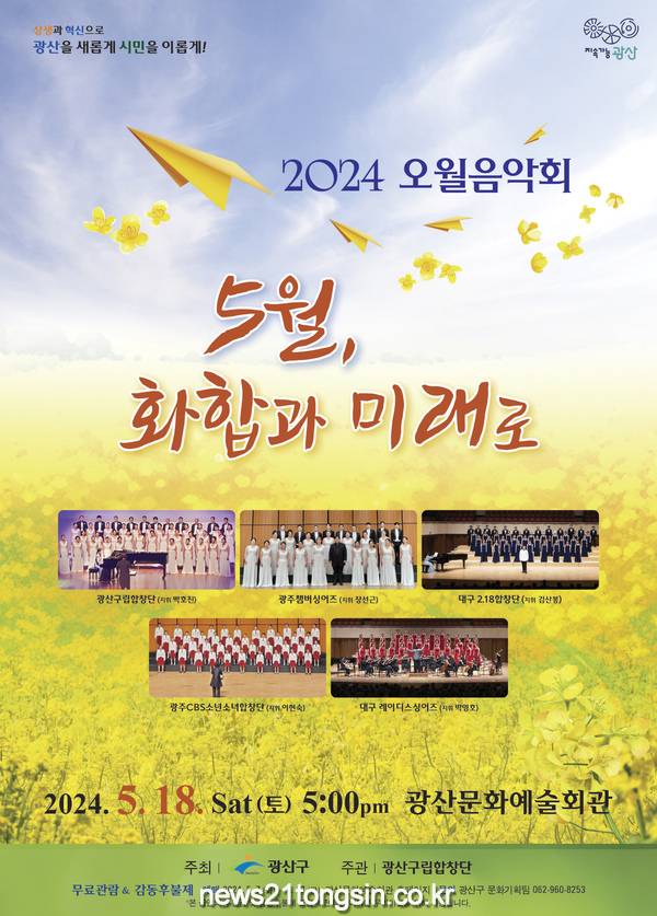 18일 오후 5시 광산문화예술회관에서 열리는 오월음악회는 ‘5월, 화합과 미래로’를 주제로 한다.