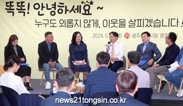 광주광역시(시장 강기정)는 14일 오후 시청 중회의실에서 강기정 광주광역시장, 김동철 한국전력공사 사장, 정회 해양에너지 대표이사를 비롯해 5개 자치구 이웃지기단, 통장단, 고독사예방 전담팀 등이 참석한 가운데 ‘고독사 예방 정책 보고회’를 열었다.