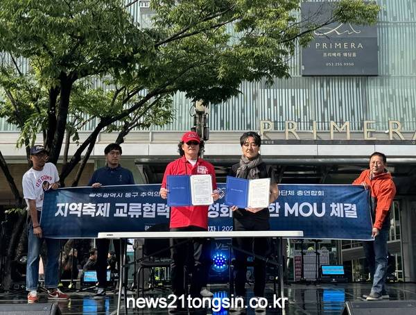 광주 동구(청장 임택)는 최근 충장축제위원회(위원장 조상열)와 사단법인 대구예술문화단체총연합회(회장 이창환)가 각 도시의 대표 축제인 ‘광주 추억의 충장축제’와 ‘파워풀 대구 페스티벌’의 상호발전을 위해 업무협약을 체결했다고 밝혔다.
