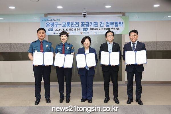 은평구(구청장 김미경)는 지난 20일 서부경찰서, 은평경찰서, 한국교통안전공단 서울본부, 도로교통공단 서울지역본부와 함께 교통안전 증진을 위한 5개 기관 업무협약을 체결한다고 밝혔다.
