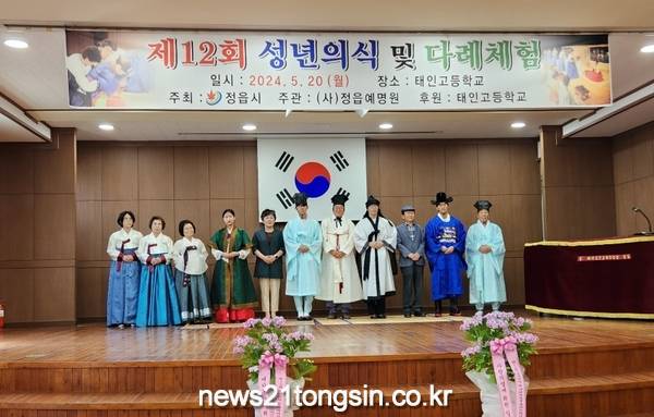 정읍예명문화원(대표 박형숙)은 지난 20일 태인고등학교 재학생 100여명을 대상으로 전통관례인 ‘성년의식’과 ‘다례체험, 을 지난 20일 실시했다.